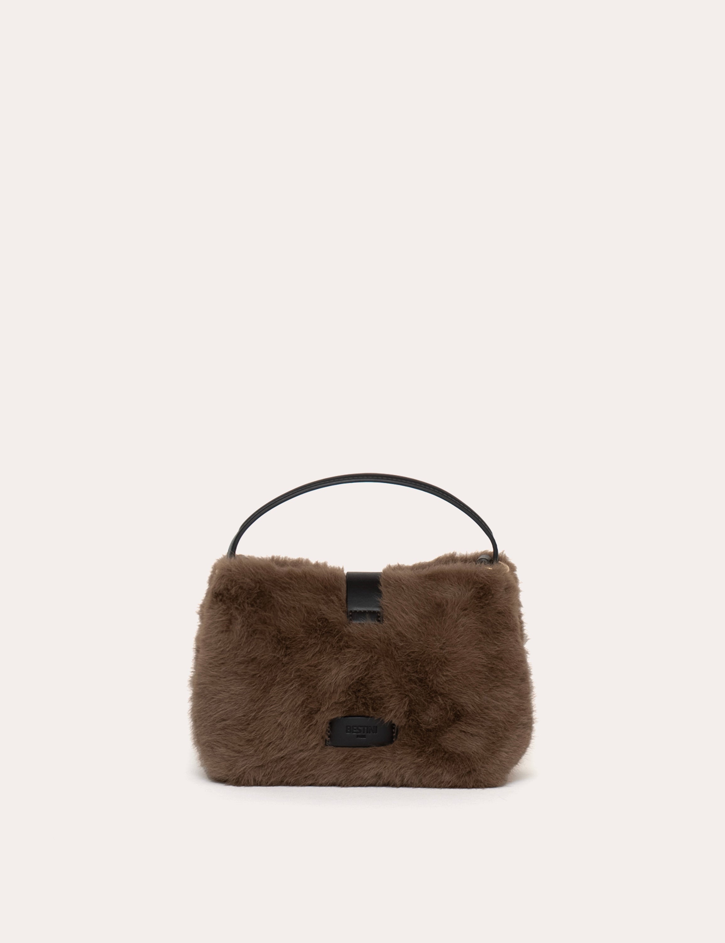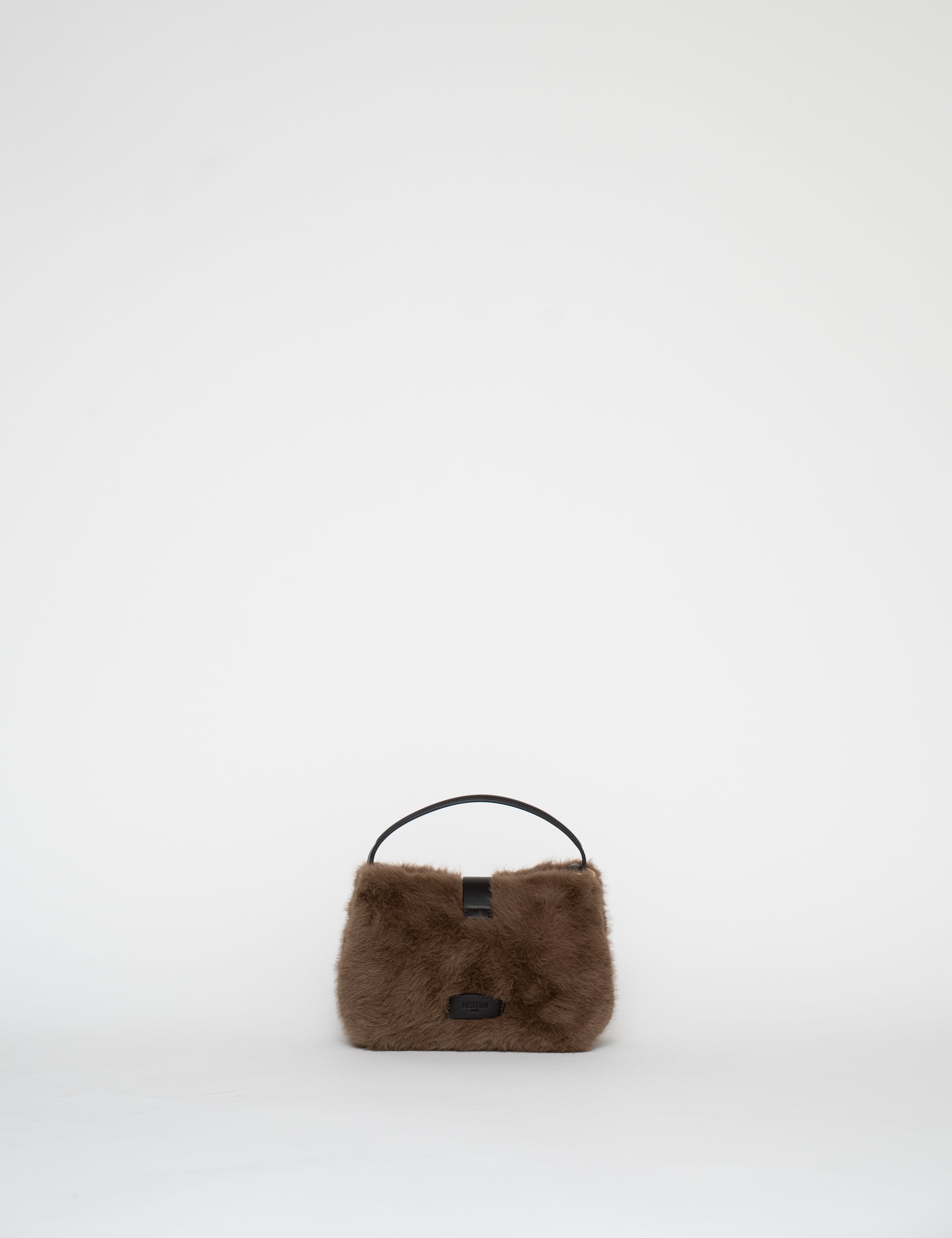 La matière apporte chaleur et relief à un volume minimaliste, construit sans couture apparente, avec un pliage au fond pour préserver la tenue.