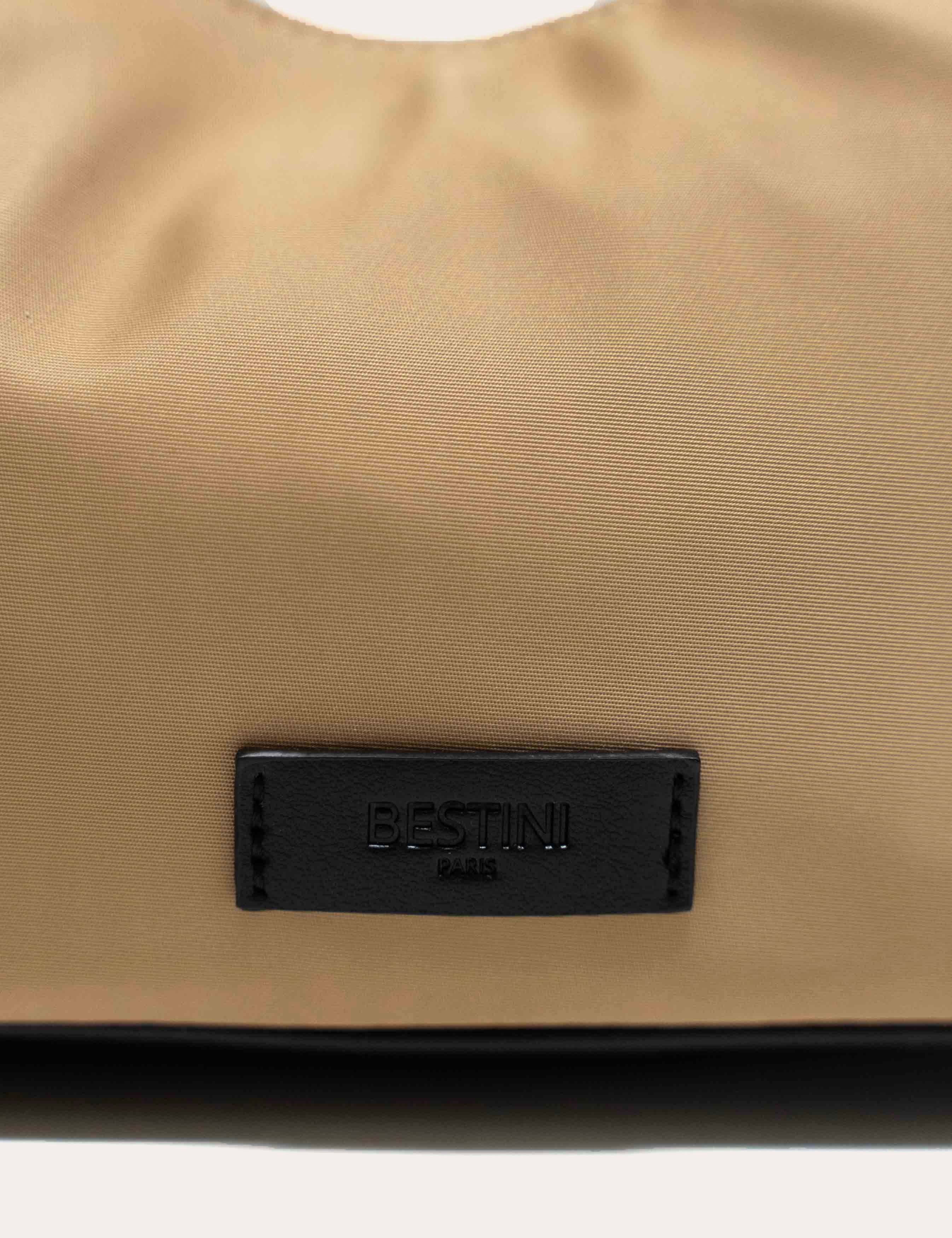 Un format compact aux lignes légèrement arrondies, structuré par une base discrètement renforcée. La surface en nylon recyclé offre un rendu mat et souple où le monogramme Bestini apparaît brodé ton sur ton.