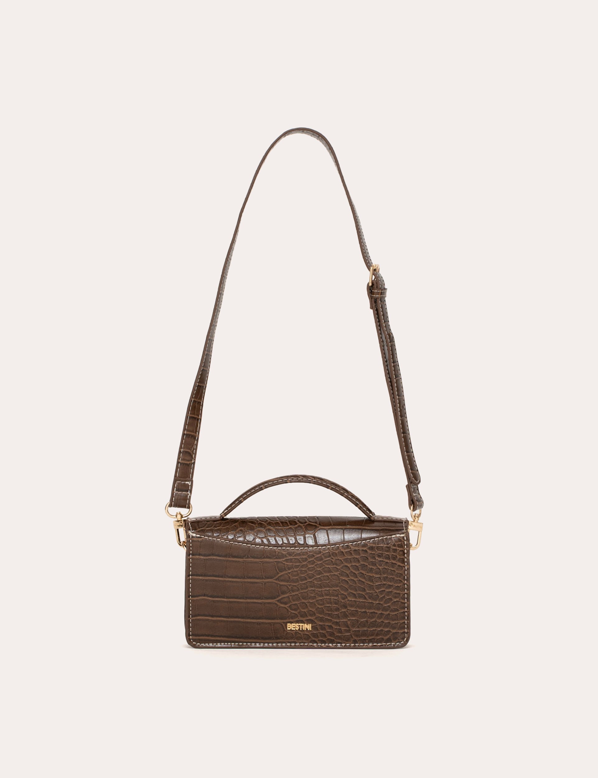 Un format mini structuré décliné en finition sans cuir effet crocodile.