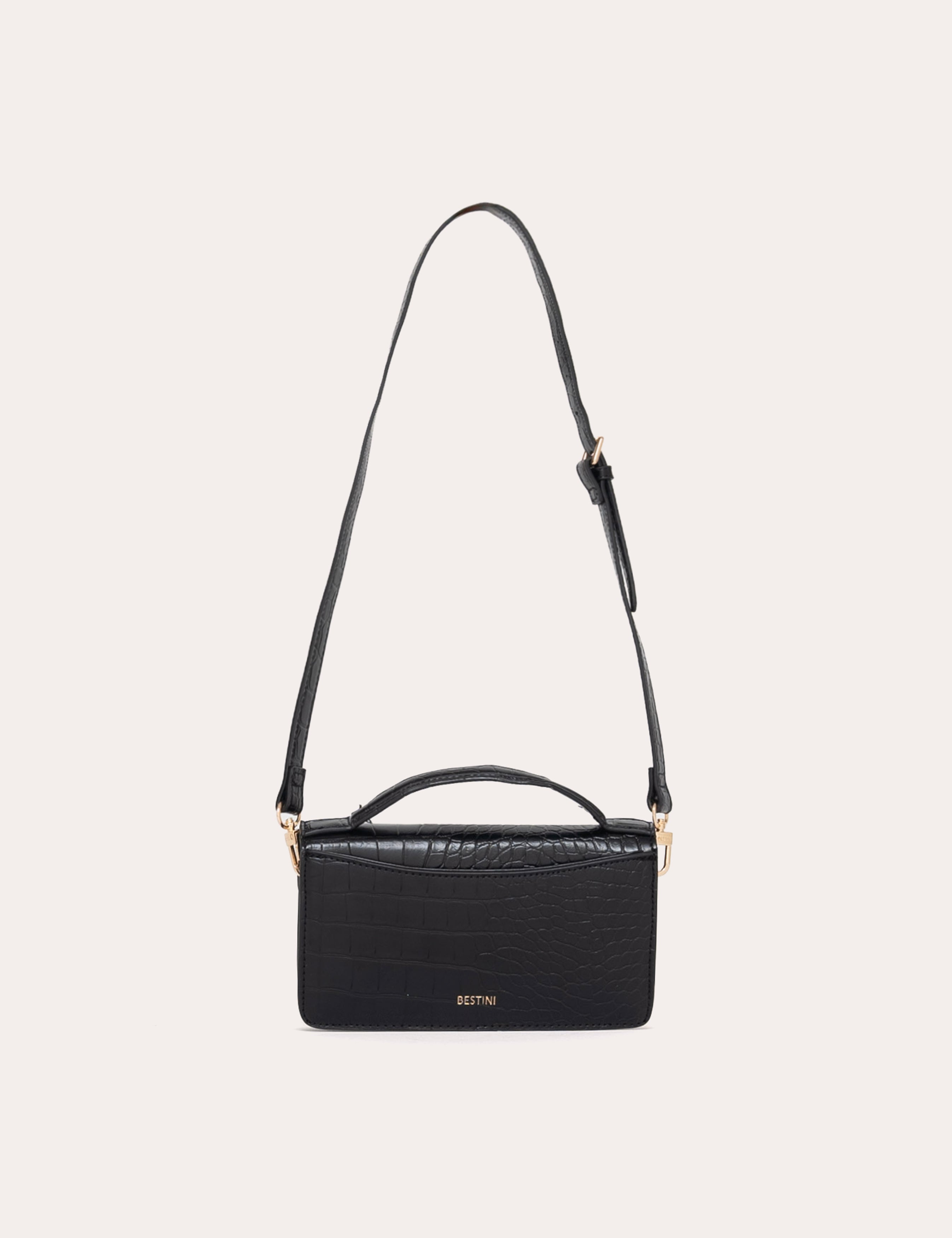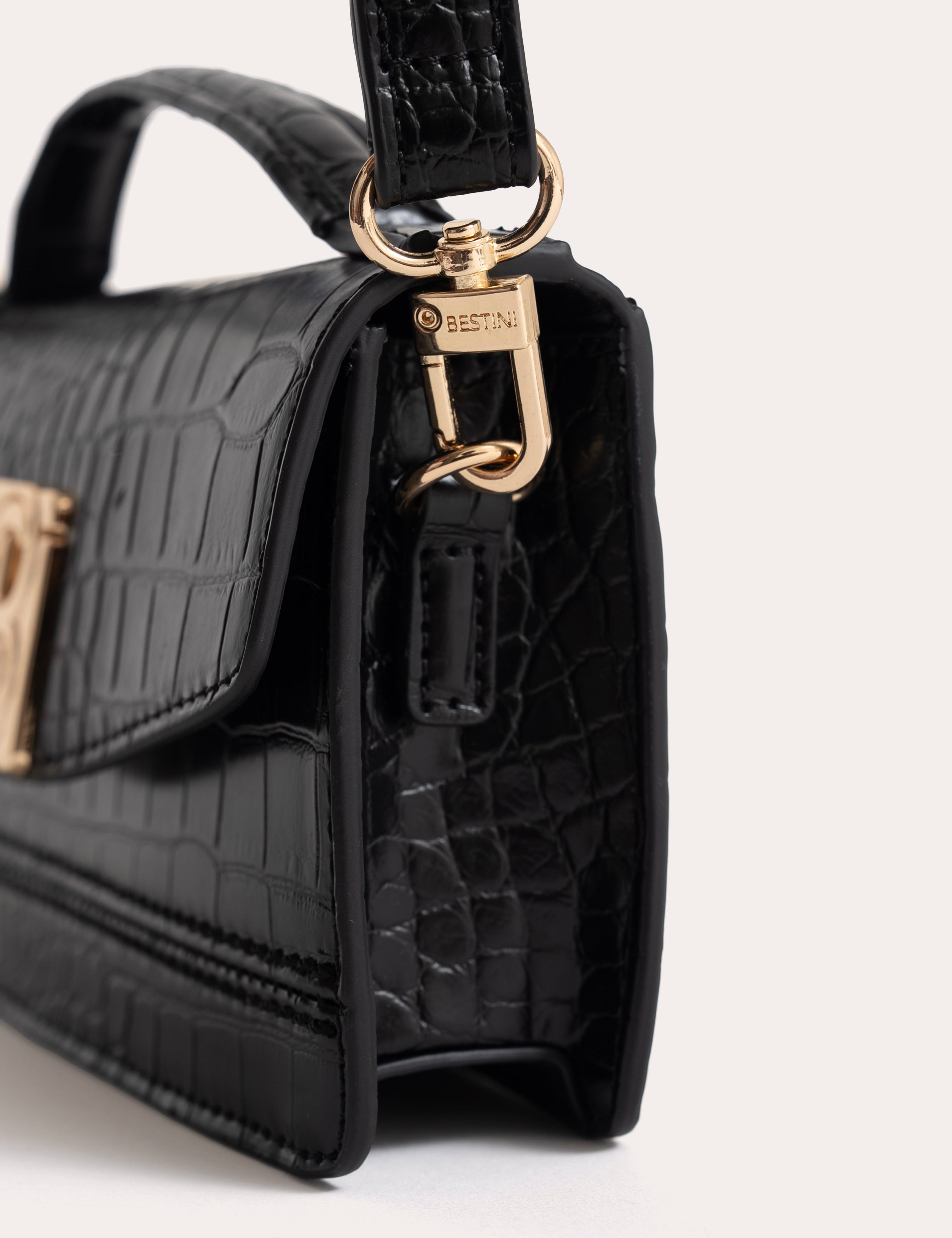 Un format mini structuré décliné en finition sans cuir effet crocodile.