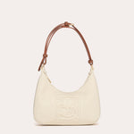 Its silhouette gracefully follows the lines of the body. The volume remains light and balanced, extended by a slender, adjustable handle reminiscent of a belt.