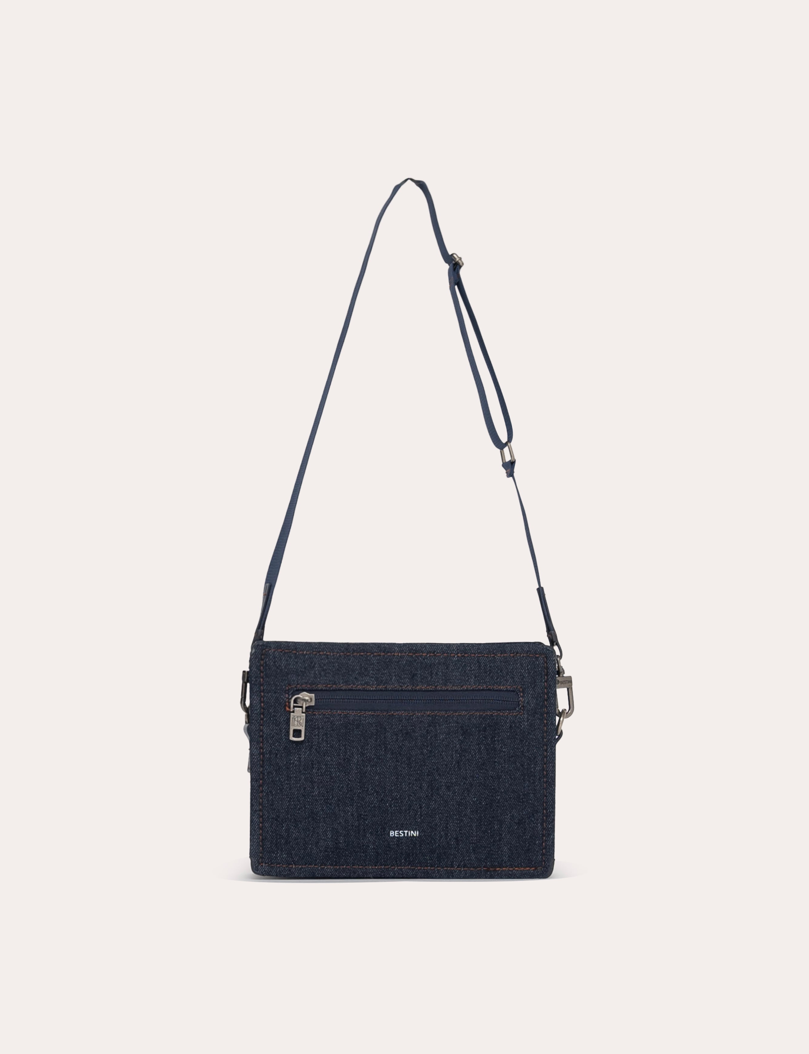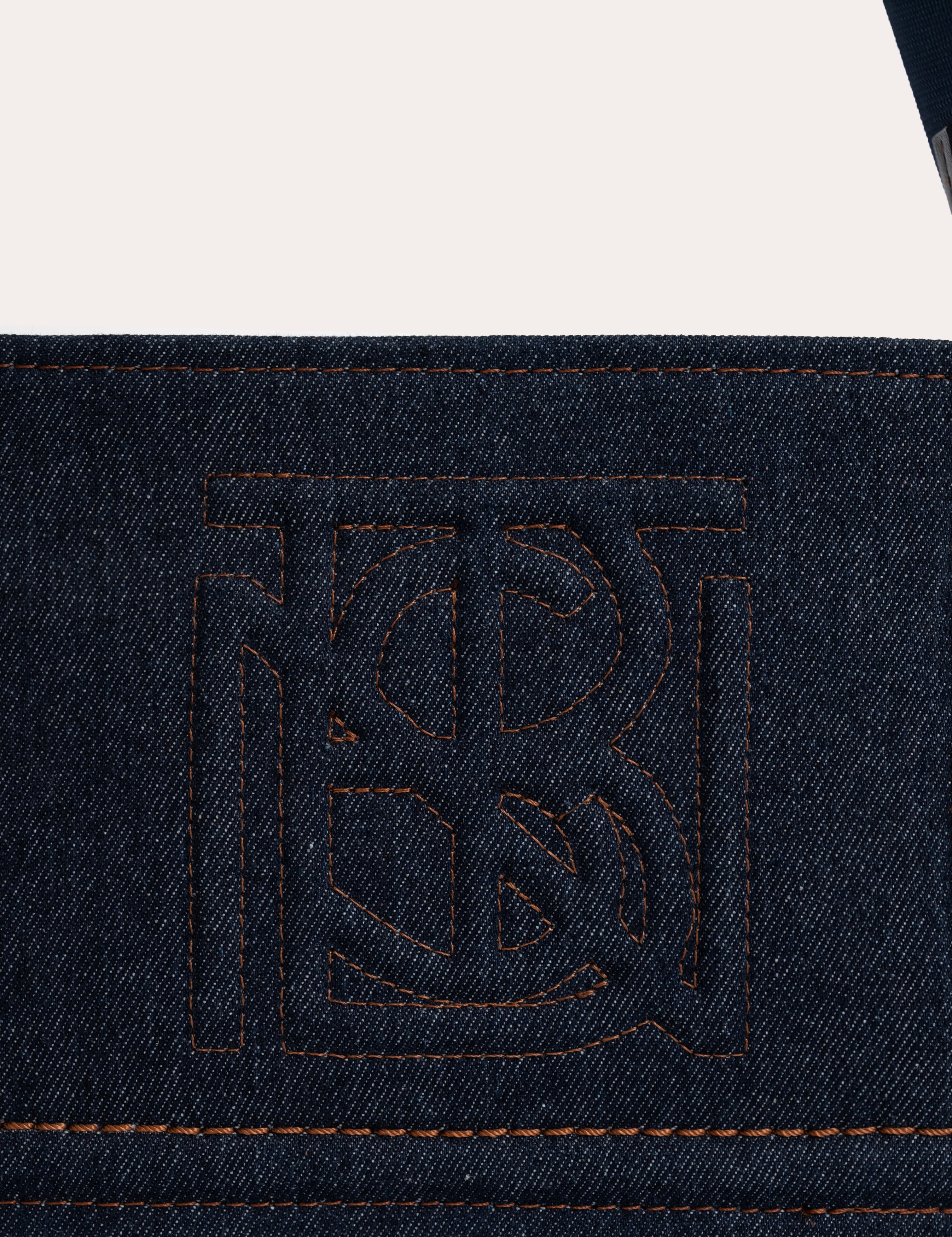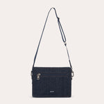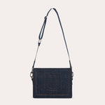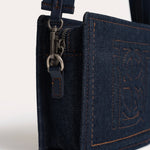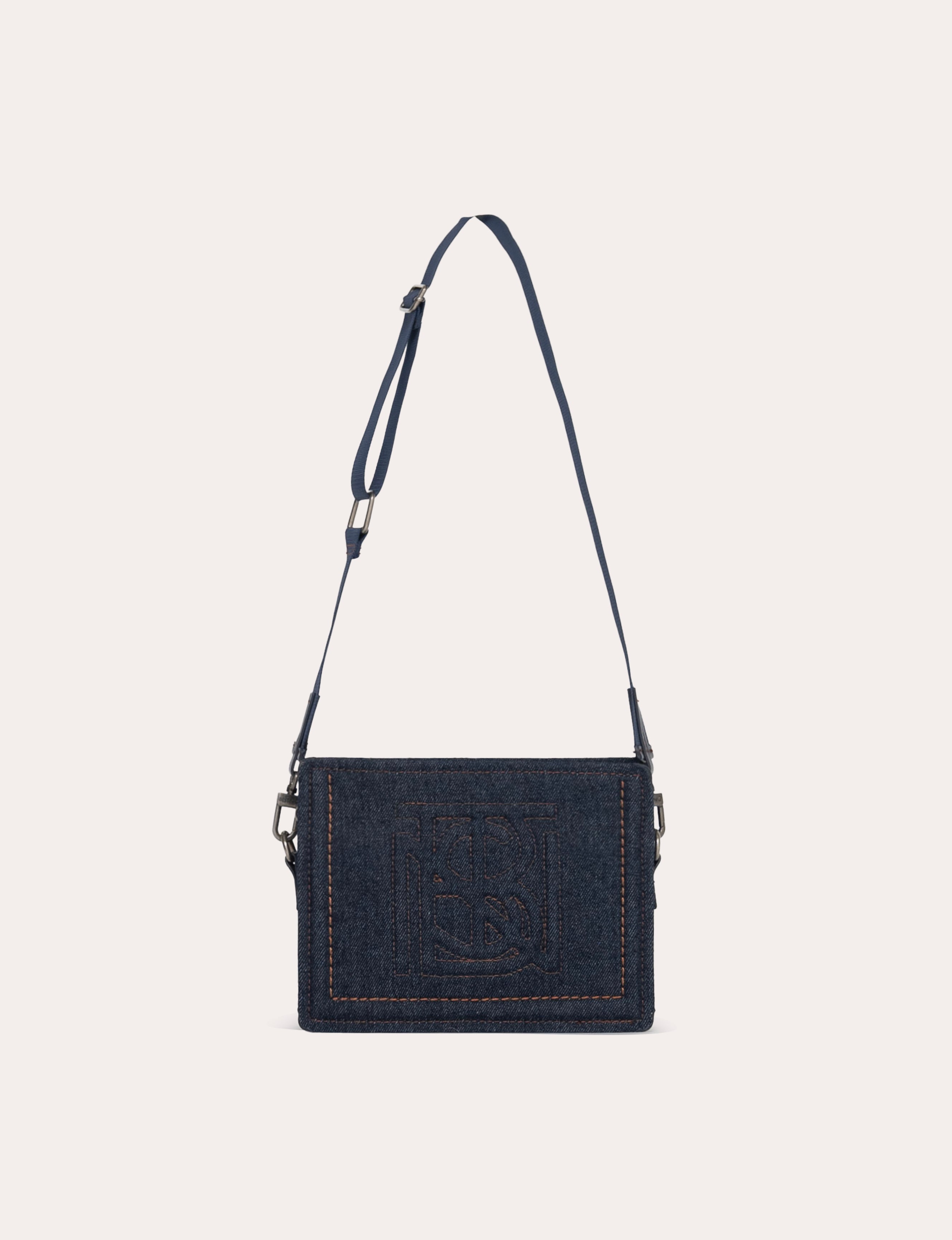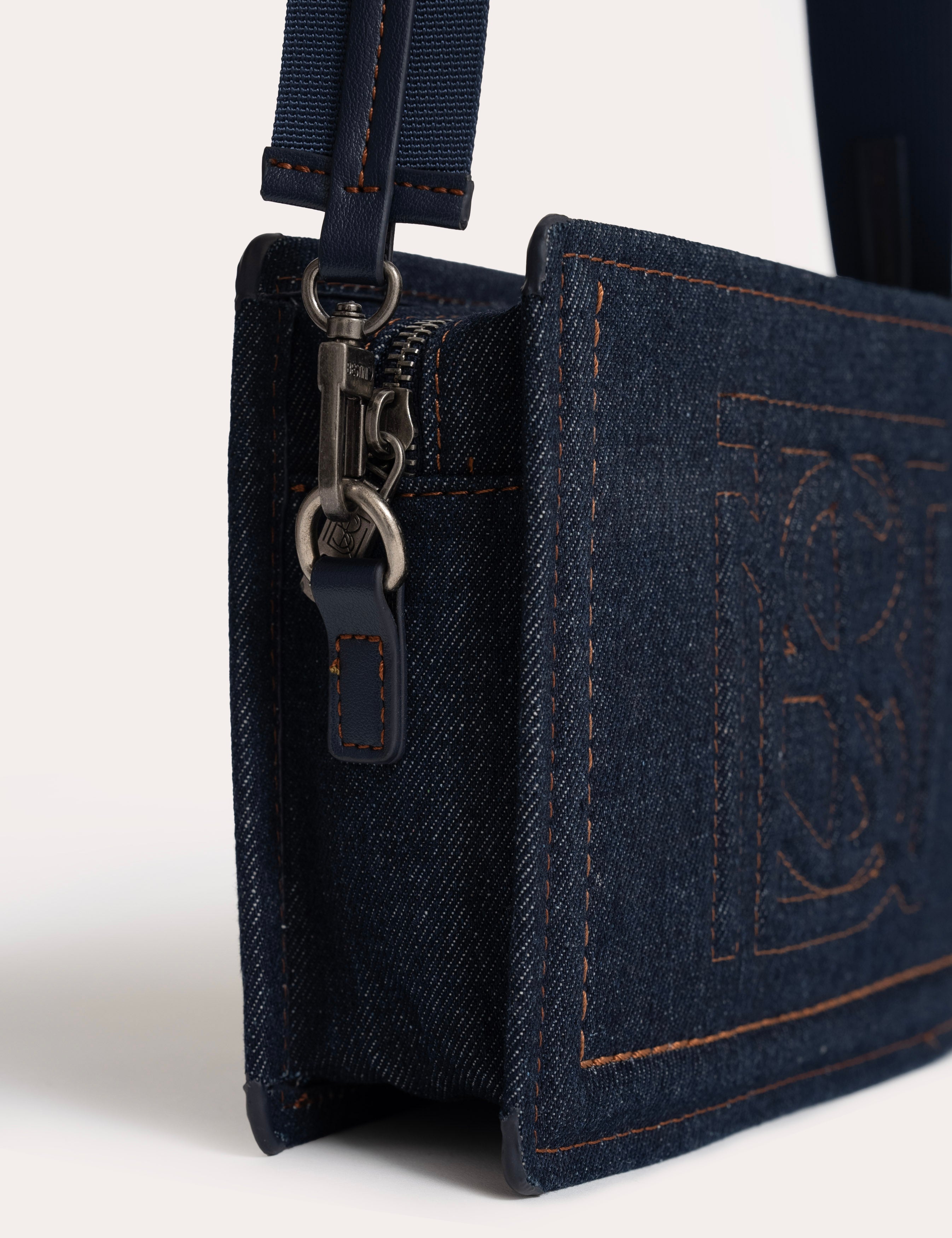 A compact rectangular bag, highlighted by a clean construction and structured denim.