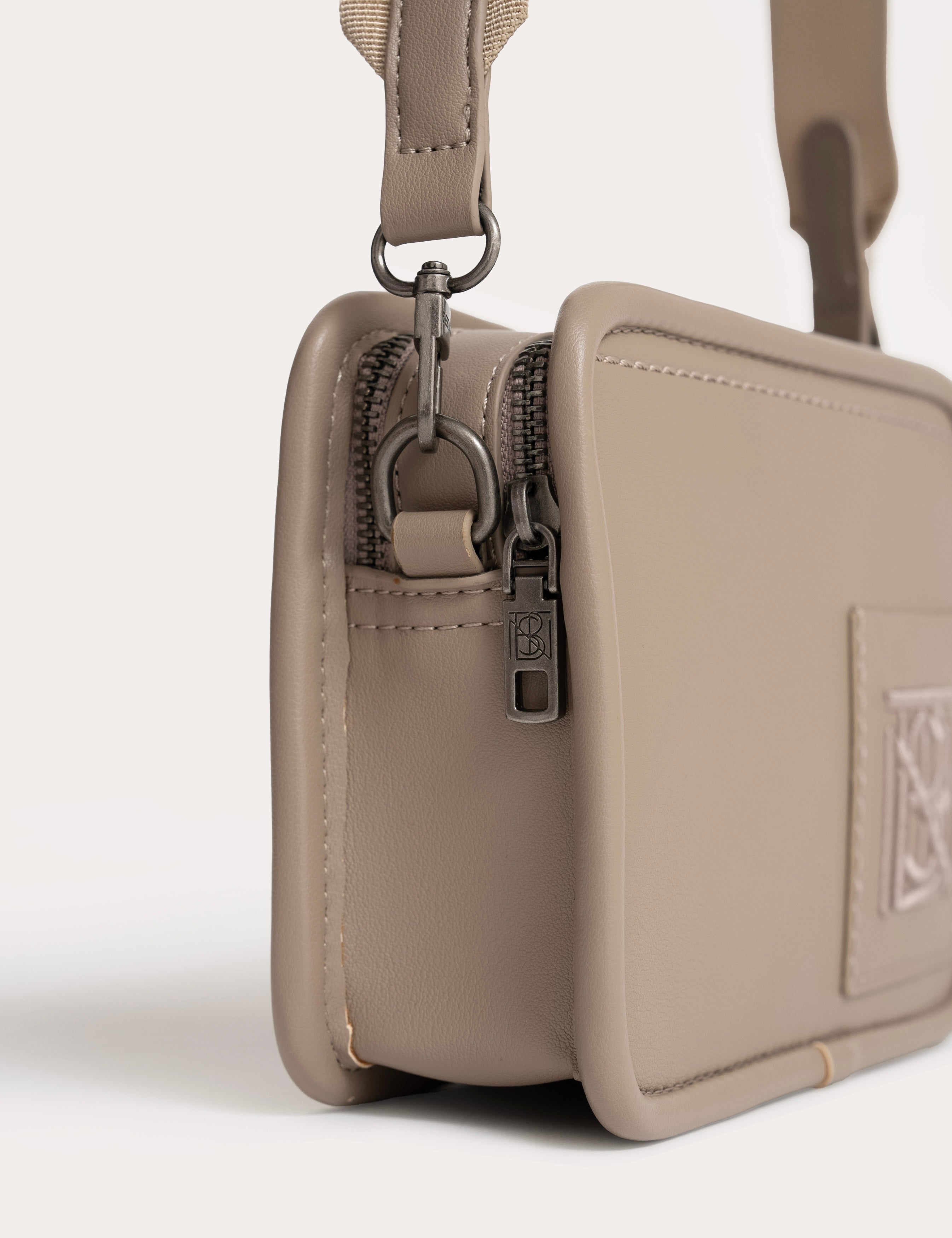 The nylon shoulder strap extends the bag's line and ensures a light and adjustable carry.