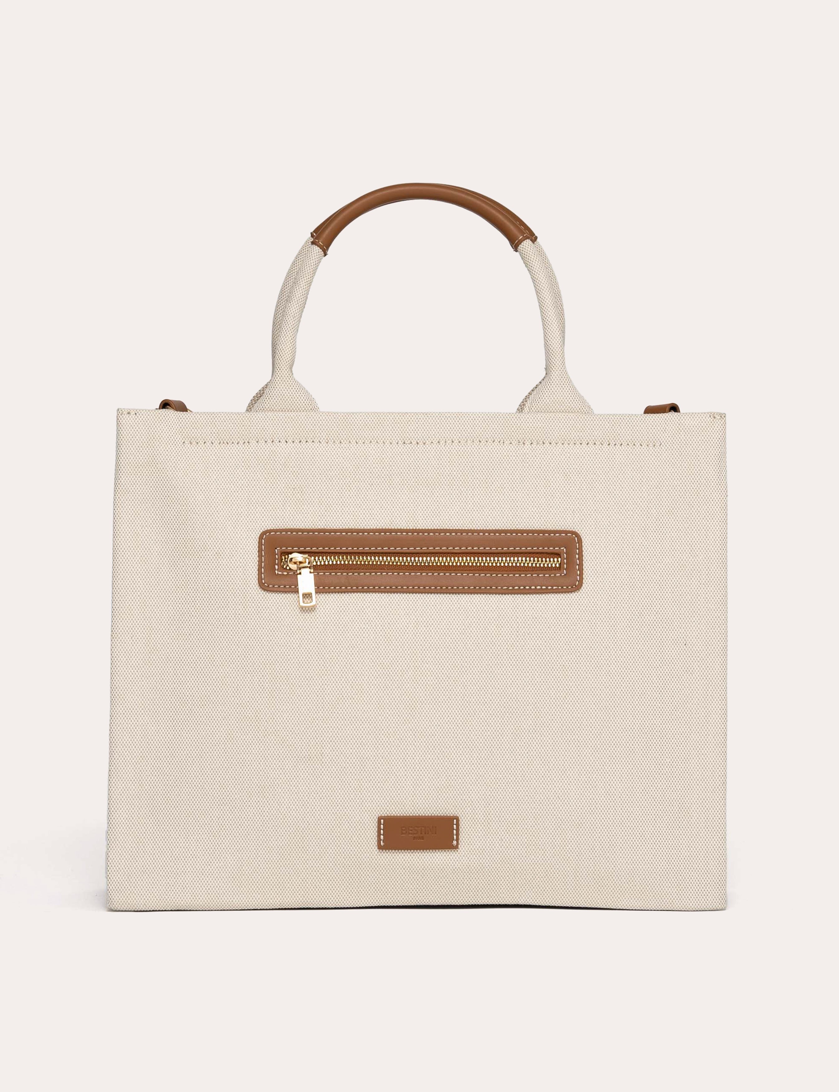A structured, vertical tote bag, featuring a textured linen weave.