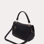 Its rounded silhouette is highlighted by a generous flap and a discreet central line. The metallic finishes and short handle structure the whole while maintaining a sober aesthetic.