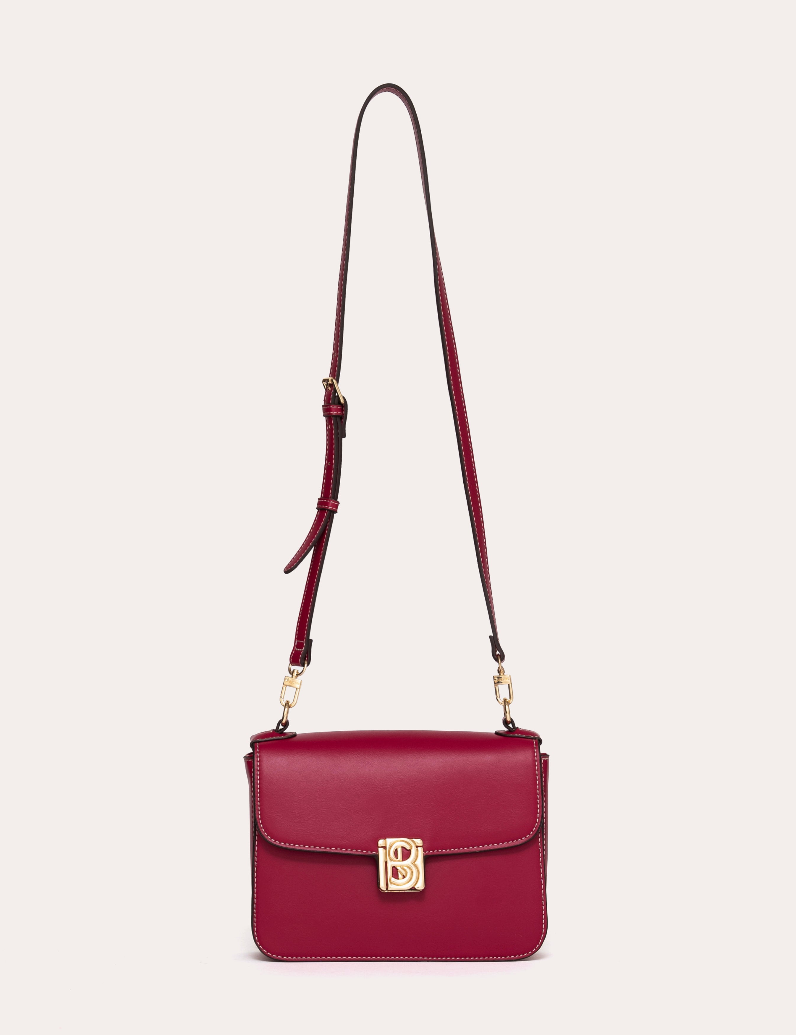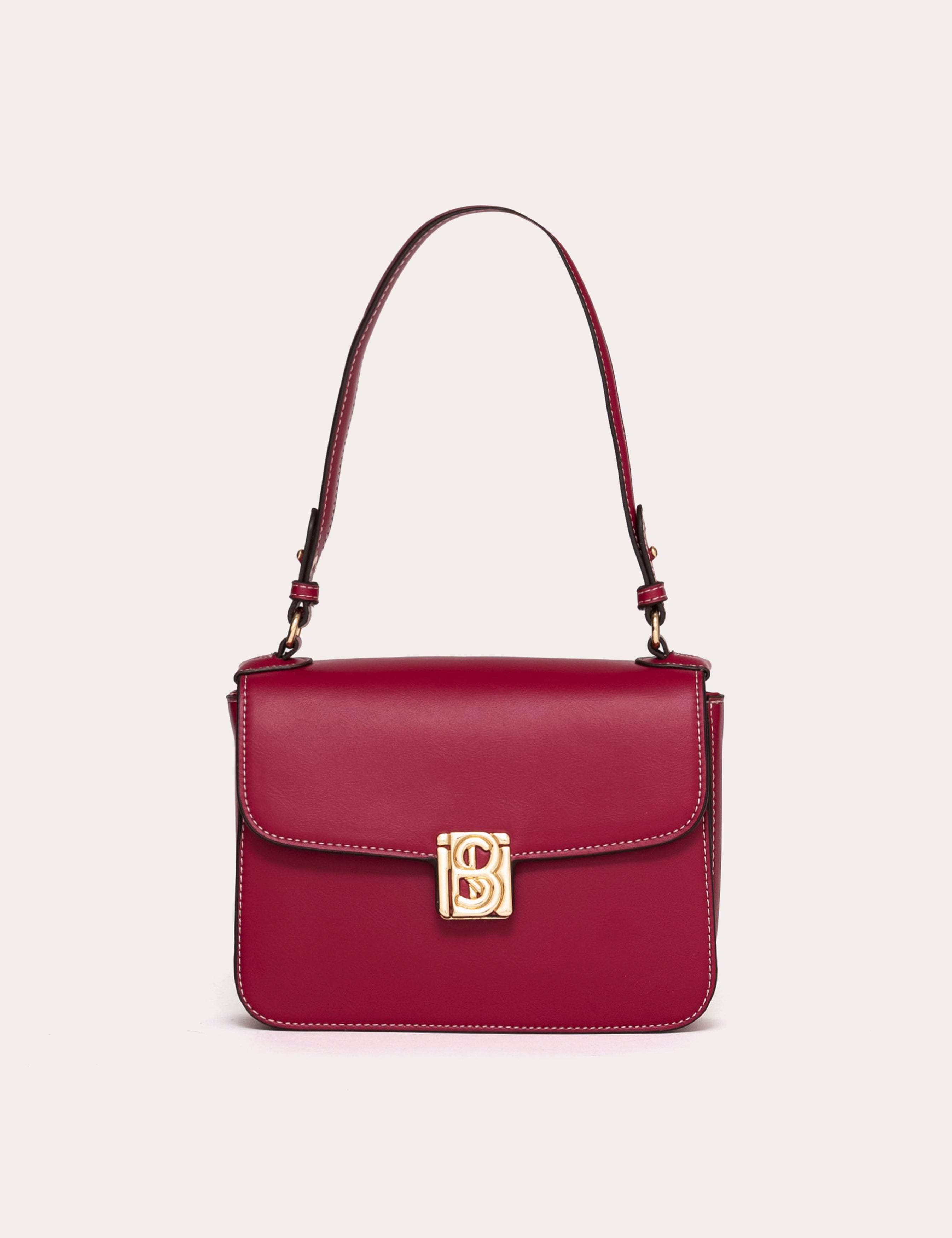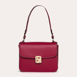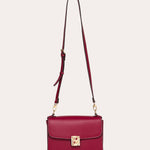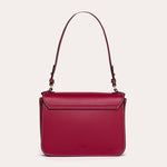 A rectangular shape structured by a clean flap and a smooth surface. The signature metal clasp punctuates the center and highlights the bag's graphic line.