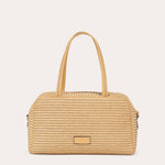 Un format rectangulaire structuré, allégé par une matière à l’esprit estival.