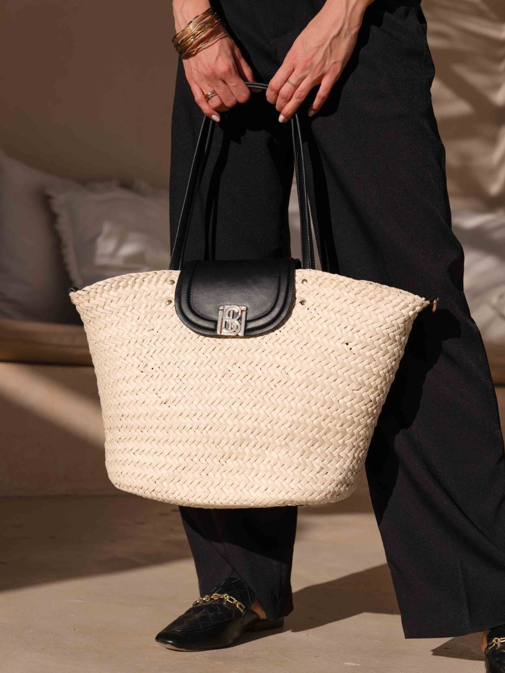 Sa conception ingénieuse fusionne le luxe des finitions d’atelier avec le travail manuel de la paille, créant un accessoire polyvalent pour toutes les occasions.
