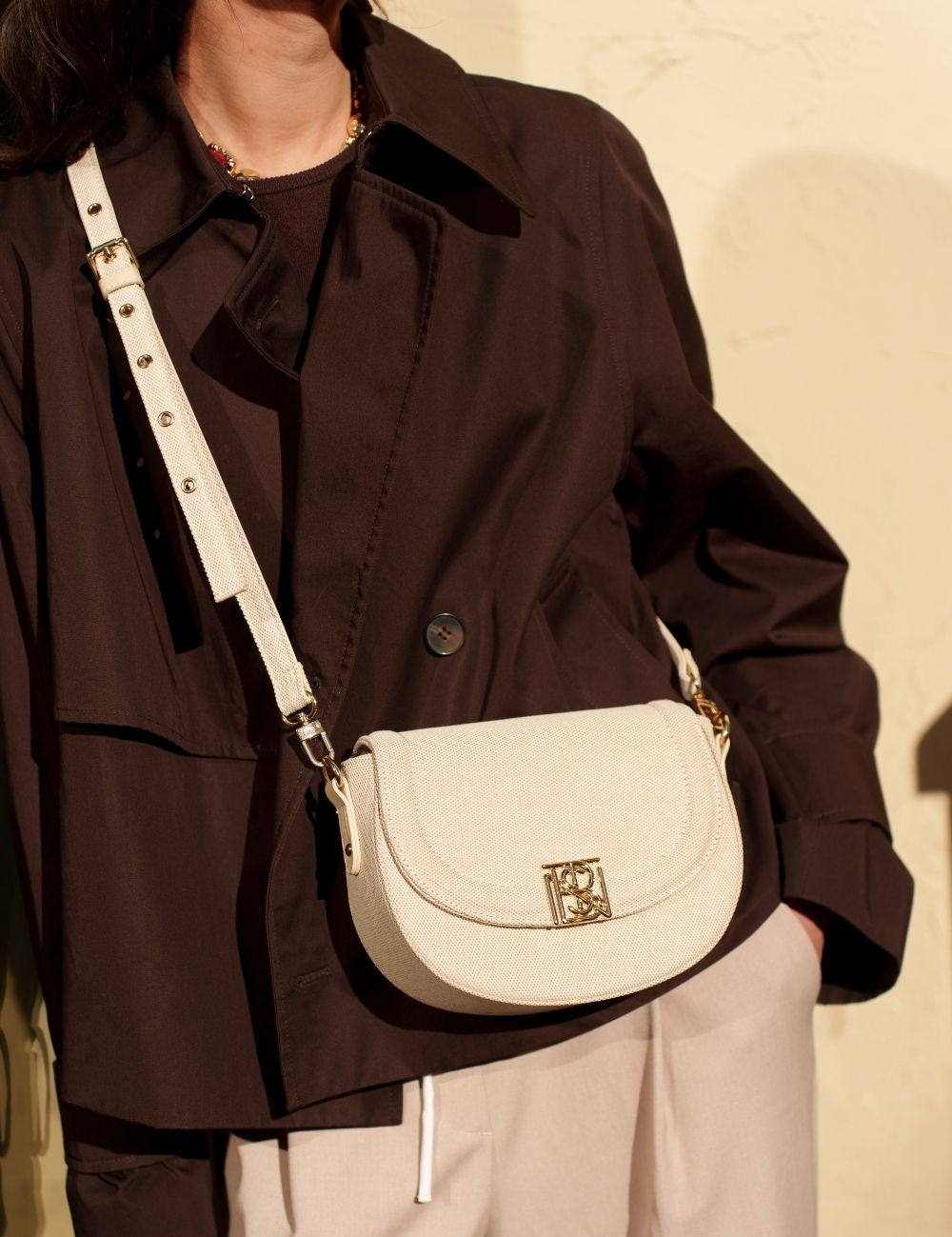 Neptini, notre sac demi-lune au charme affirmé, revient dans une version plus douce, plus libre, presque aérienne. Avec sa nouvelle composition à 98 % coton, il effleure la peau et capture l’esprit d’un été sans contrainte. Sa silhouette reste fidèle à elle-même : une féminité intemporelle, sans jamais tomber dans le fashion faux pas.
